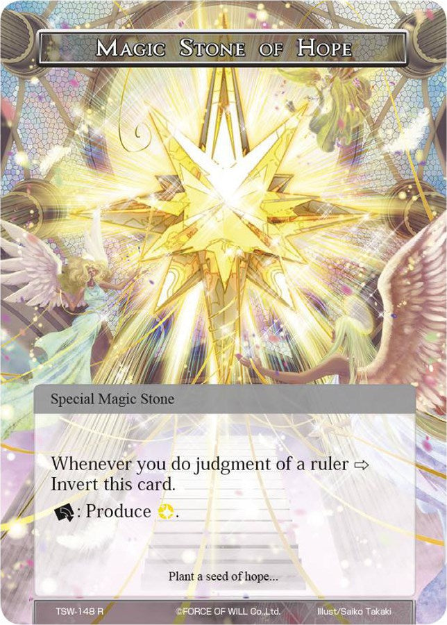 Magic Stone of Hope Whenever you do judgment of a ruler -> Invert this card. Rest: Produce W. Magic Stone of Despair Rest: Produce W or B.