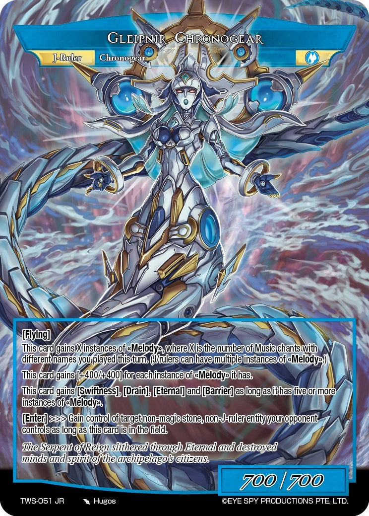 This card gains [Swiftness], [Drain], [Eternal] and [Barrier] as long as it has five or more instances of "Melody".