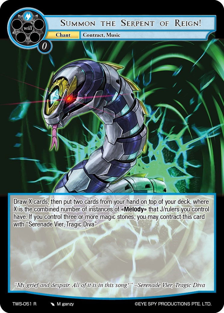 Draw X cards then put two cards from your hand on top of your deck, where X is the combined number of instances of "Melody" that J/rulers you control have. If you control three or more magic stones, you may contract this card with "Serenade Vier, Tragic Diva".